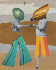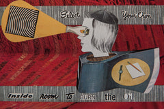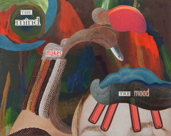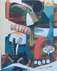 For many years, Cy has created figurative abstractions that juxtapose words and found visual elements to explore interior precesses like thinking, reasoning, worrying and deciding. In life, these sorts of mental acts draw on myriad sources- things from memory and recent life, things we've heard, said, seen and imagined. Sometimes our mental connections barely hang together, and we need to concoct narratives, mantras or aphorisms to tie up the loose ends.
