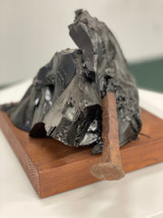 Tar, railroad spike, wood