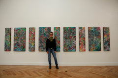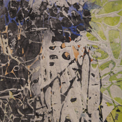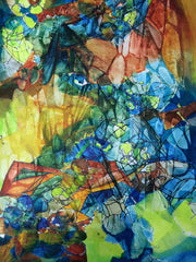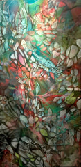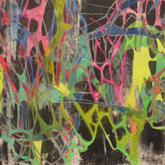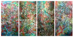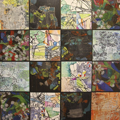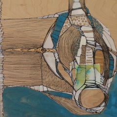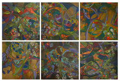 Ink, gouache and wood stain on wood panel with resin (6 panels)