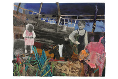 Rag paper, photo print, matte medium, acrylic paint on canvas