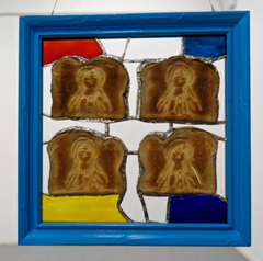 Polyurethaned toast, leaded glass, wood