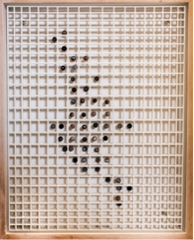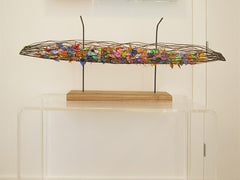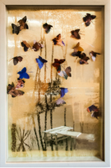 35 mm film, acetate, flagging tape, LED lights. acrylic